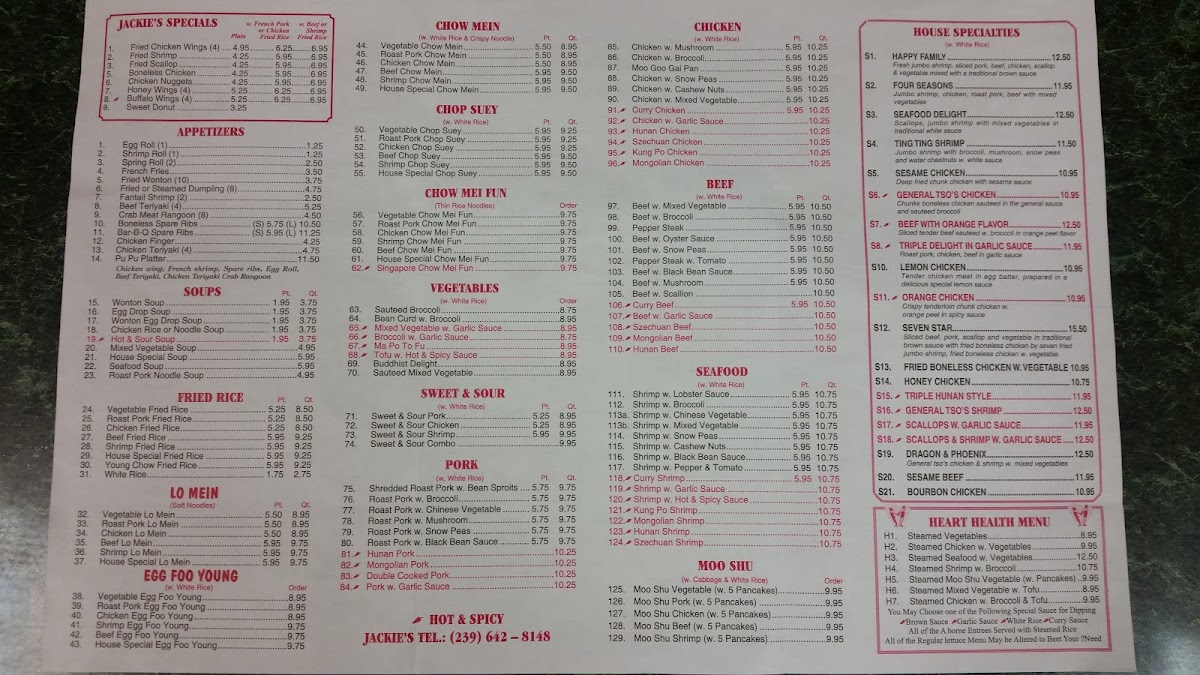 Conveniently located on Marco Island, Jackie's Chinese Restaurant offers an authentic taste of New York-style Chinese cuisine. Renowned for their quick service, this cozy spot specializes in take-out, delivering fresh and mouthwatering dishes that locals rave about.